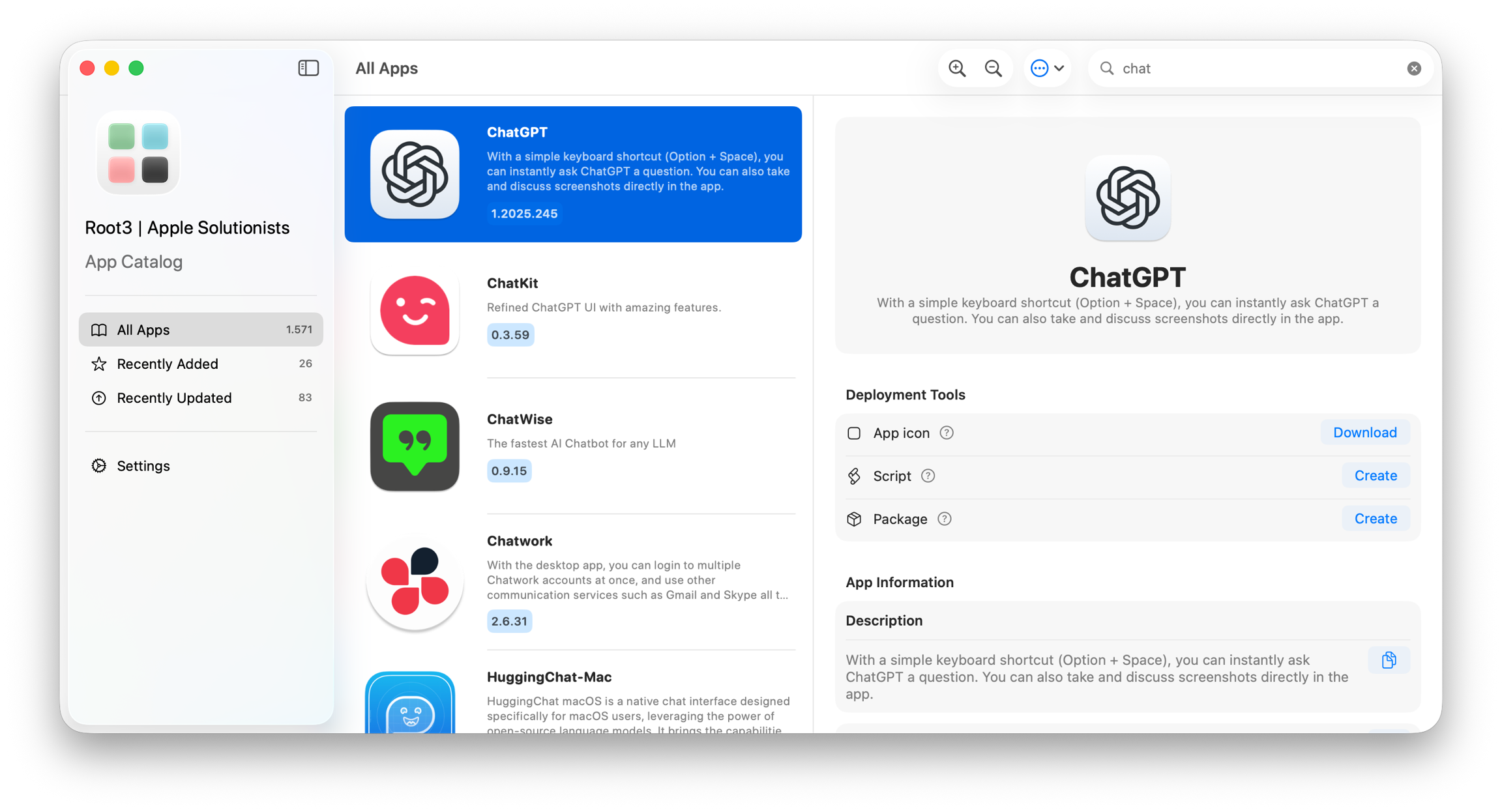 Deployment Tools allow administrators to easily download an app deployment script or package to use with an MDM solution. Administrators don't have to manually create these assets and save a lot of time when setting up App Catalog.