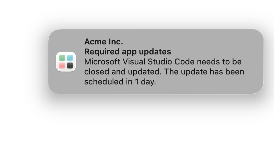 App Catalog can notify users about important update activity, for example when updates have finished, when required updates are still waiting to be installed, or when an update is about to be enforced.